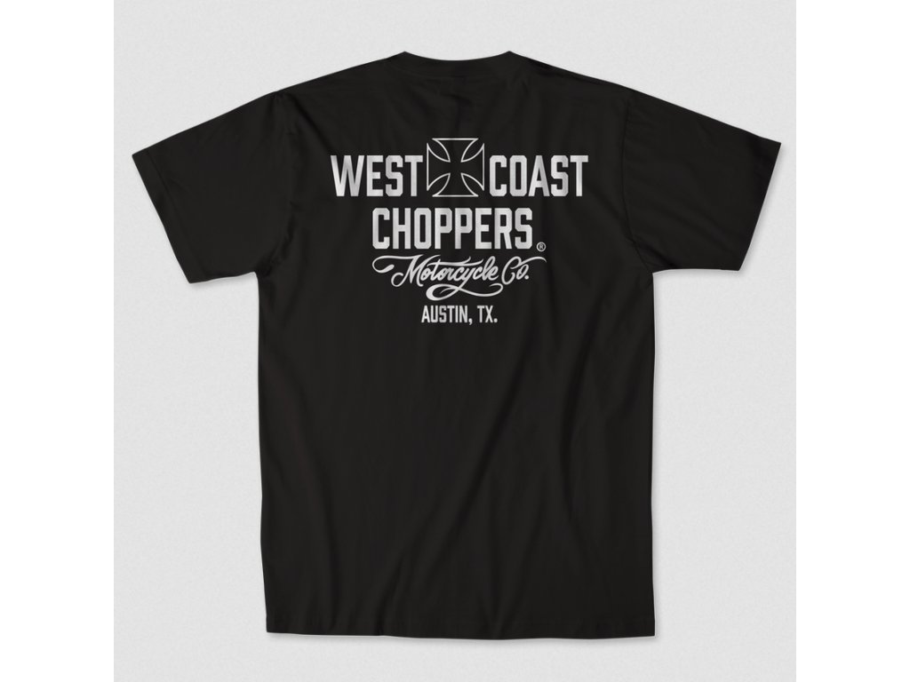 Černé pánské triko West Coast Choppers s krátkým rukávem a s nápisem Austin, Texas na zadní straně.
