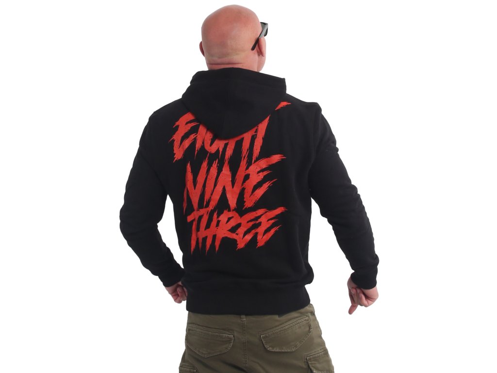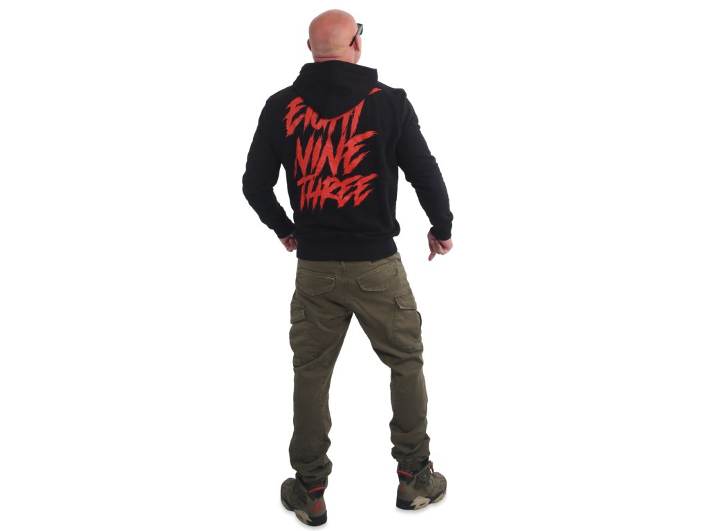 Pánská mikina Yakuza Fat Tag 21003 s dlouhým rukávem a kapucí. Černá mikina s klokaní kapsou, oboustranným potiskem, šňůrkou na stahování kapuce a samozřejmostí je také štítek s logem Yakuza na bočním švu.