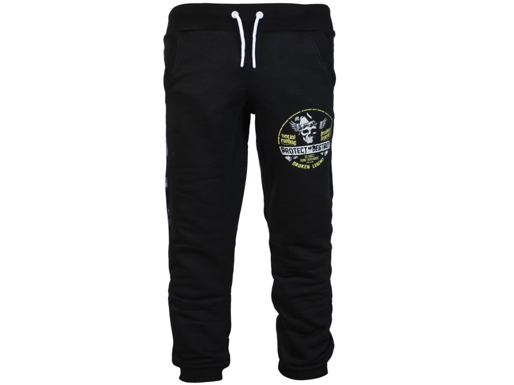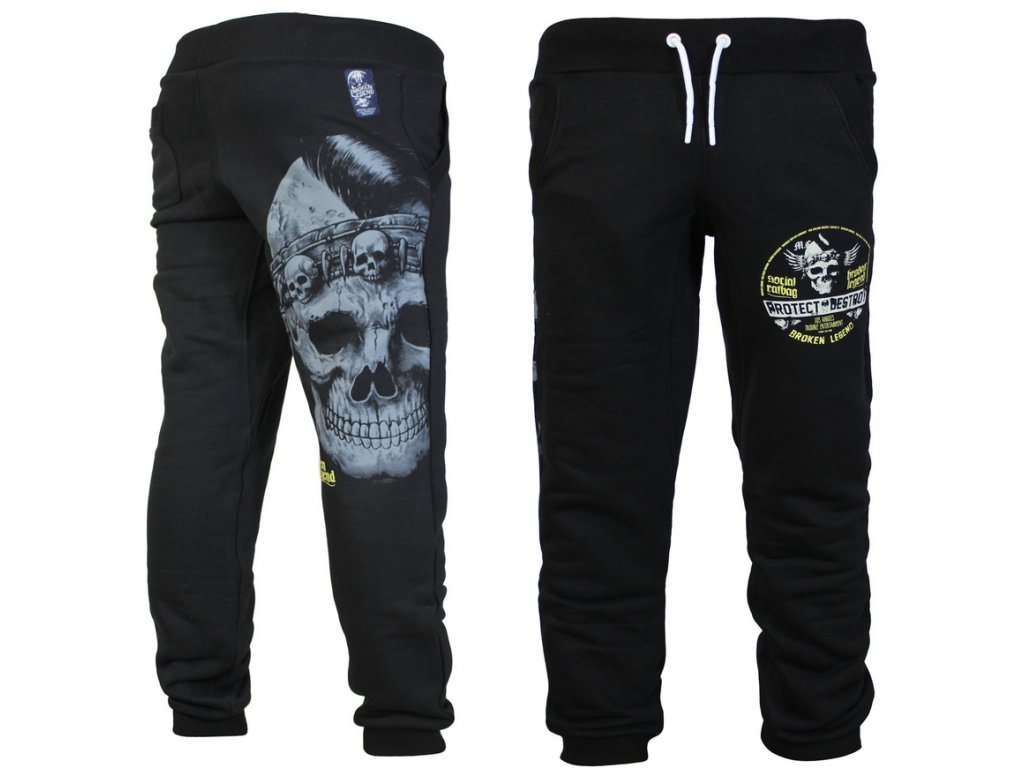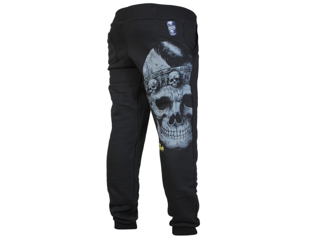 Pánské tepláky Yakuza Premium 110 z kolekce Broken Legend. Tepláky mají na zadní straně větší potisk lebky. Kalhoty mají na konci nohavic pružnou manžetu. Samozřejmostí jsou dvě boční kapsy, ideální pro uložení drobností. Tepláky jsou vhodné nejen na sportovní aktivity, ale udělají dobrý dojem i v běžném životě a ve volném čase.