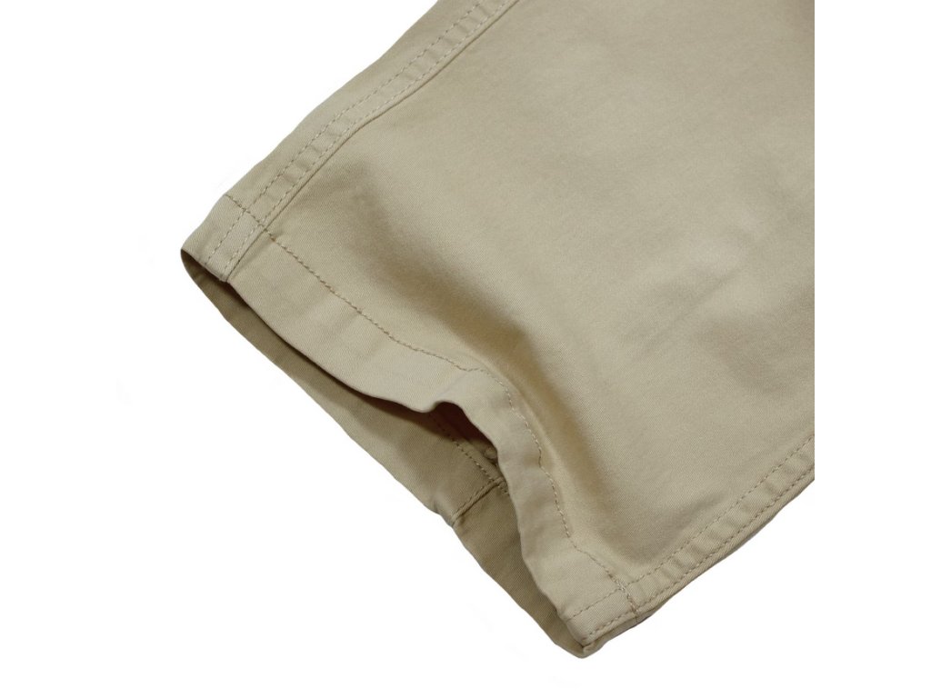 Dlouhé kalhoty Yakuza Premium 3952 s kapsami v béžové barvě z kolekce podzim/zima 2025. Tyto džíny mají dvě kapsy na stehnech na druk a také dvě klasické kapsy. Nohavice je střihem rovná.