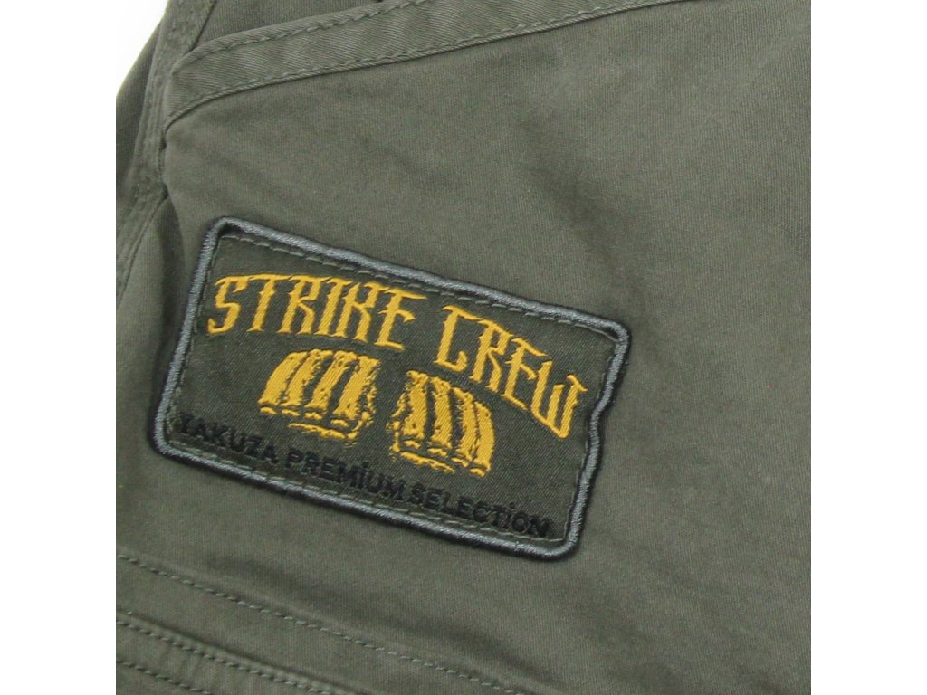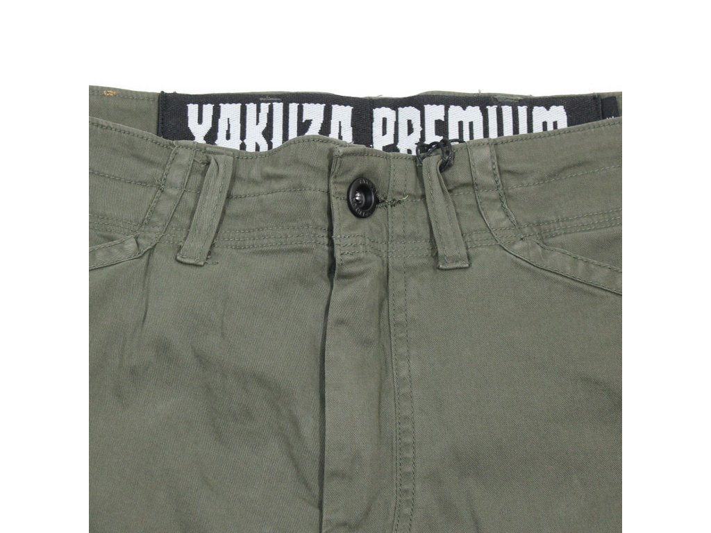 Kraťasy 3453 v tmavě olivové barvě od Yakuza Premium Selection. Kraťasy mají nášivku Yakuza Premium na levé straně a boční kapsy na zip.