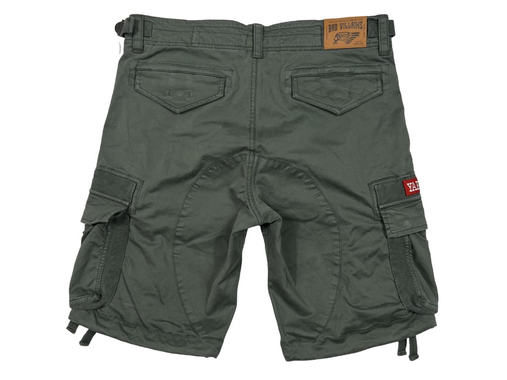 Kraťasy 3655 v šedo-olivové barvě od Yakuza Premium Selection. Kraťasy mají nášivku Yakuza Premium na levé boční kapse. Boční kapsy jsou na zip a samozřejmostí jsou také klasické boční kapsy. Letní střih nad kolena a skvělá kvalita látky. Míra uvedená na příkladu velikosti XL je cca 49 cm měřeno vleže na horní manžetě a cca 56 cm na boku (délka nohavic).