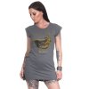 Prodloužené dámské tričko/šaty Yakuza Premium 3333 v šedé barvě se žlutým potiskem.