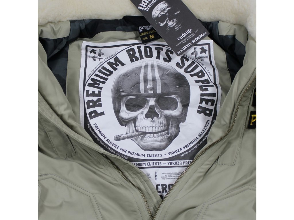 Zimní bomber 3965 ve světle olivové barvě od Yakuza Premium. Stylovej bomber s velkým množstvím propracovaných doplňků a velkým množstvím kapes. Bunda je střižena klasicky volnější, jen je o něco kratší než běžné bundy.