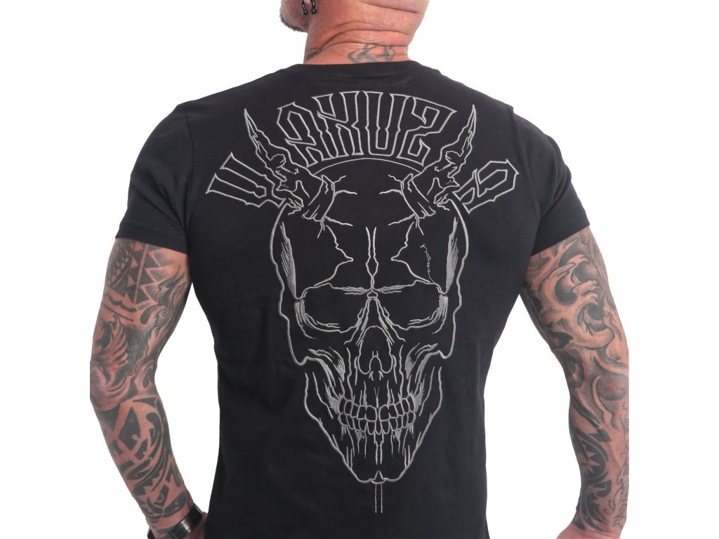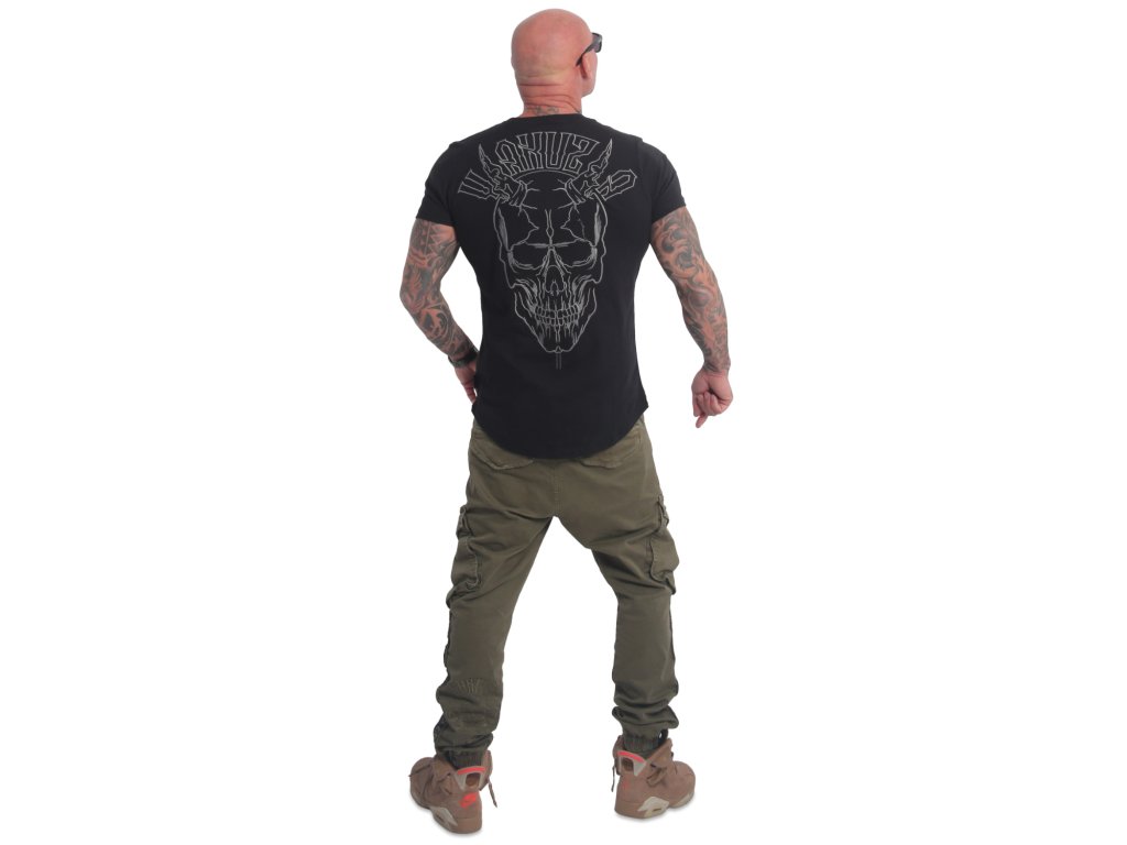 Pánské triko s krátkým rukávem Yakuza My Master Curved 21053. Černé triko s kulatým výstřihem a velkým potiskem na zadní straně, samozřejmostí je štítek s logem Yakuza na bočním švu.