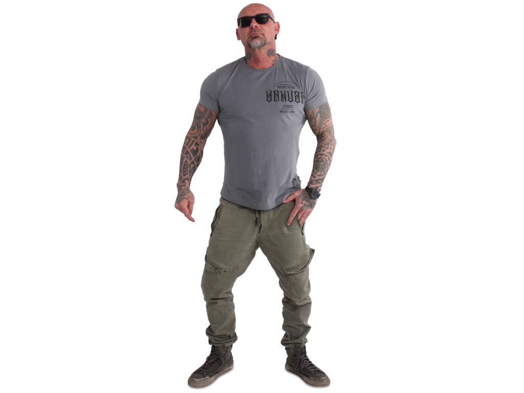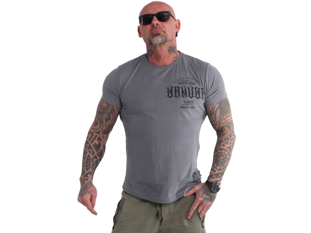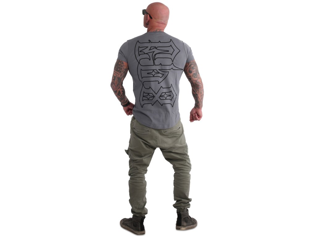 Pánské triko s krátkým rukávem Yakuza Do Us Part Long Tail 20083. Šedé triko s kulatým výstřihem a oboustranným potiskem, samozřejmostí je štítek s logem Yakuza na bočním švu.