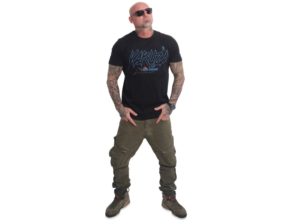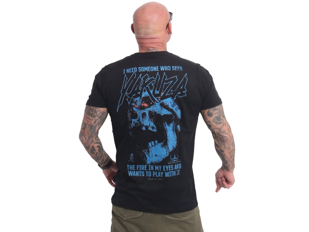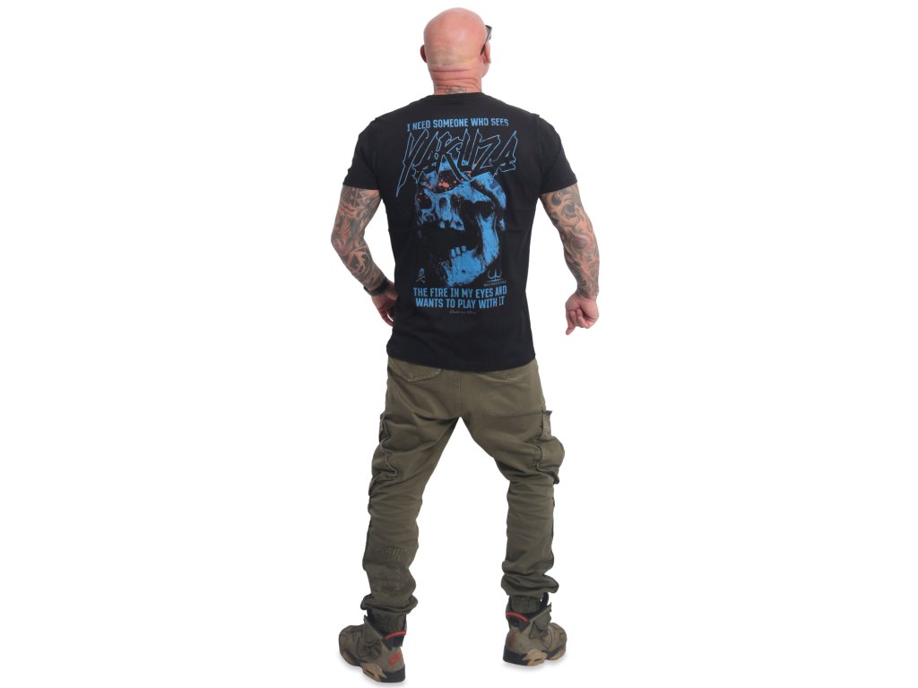Pánské triko s krátkým rukávem Yakuza Fire 22017. Černé triko s kulatým výstřihem a oboustranným potiskem, samozřejmostí je štítek s logem Yakuza na bočním švu.