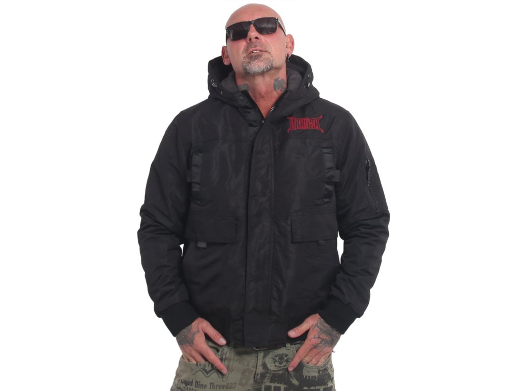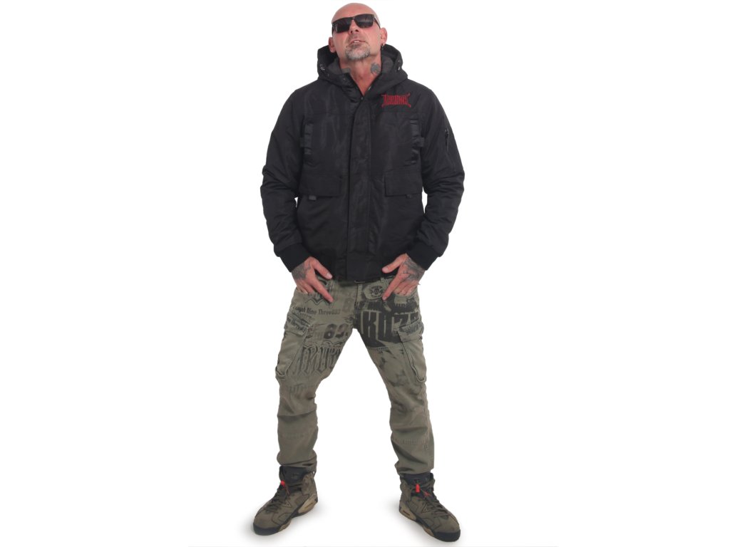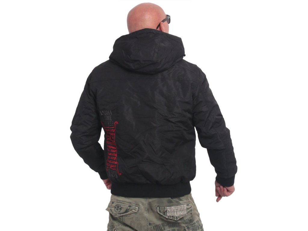 Pánská zimní bunda Yakuza Diablo 20067 s měkkou fleecovou podšívkou. Bunda má 6 uzavíratelných vnějších kapes a jednu vnitřní, široké elastické manžety a krytý zip. Bunda je doplněna kapucí se stahovací šňůrkou a výšivkou na levé zadní straně. Model je vysoký 1,82 m a má na sobě velikost XL.